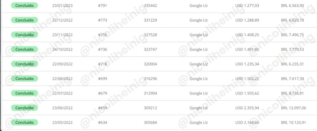 Veja alguns dos meus recebimentos nos últimos meses
